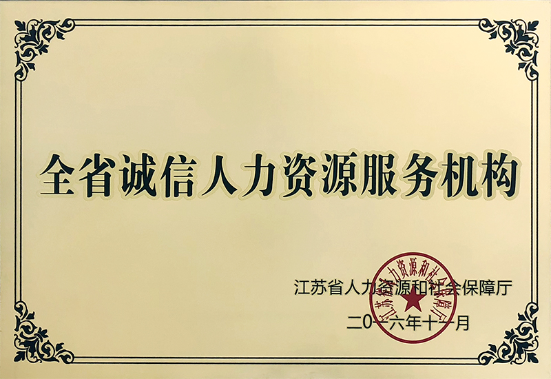 “江蘇省誠(chéng)信人力資源服務(wù)機(jī)構(gòu)”、“江蘇省工人先鋒號(hào)”等多項(xiàng)榮譽(yù)稱(chēng)號(hào)。